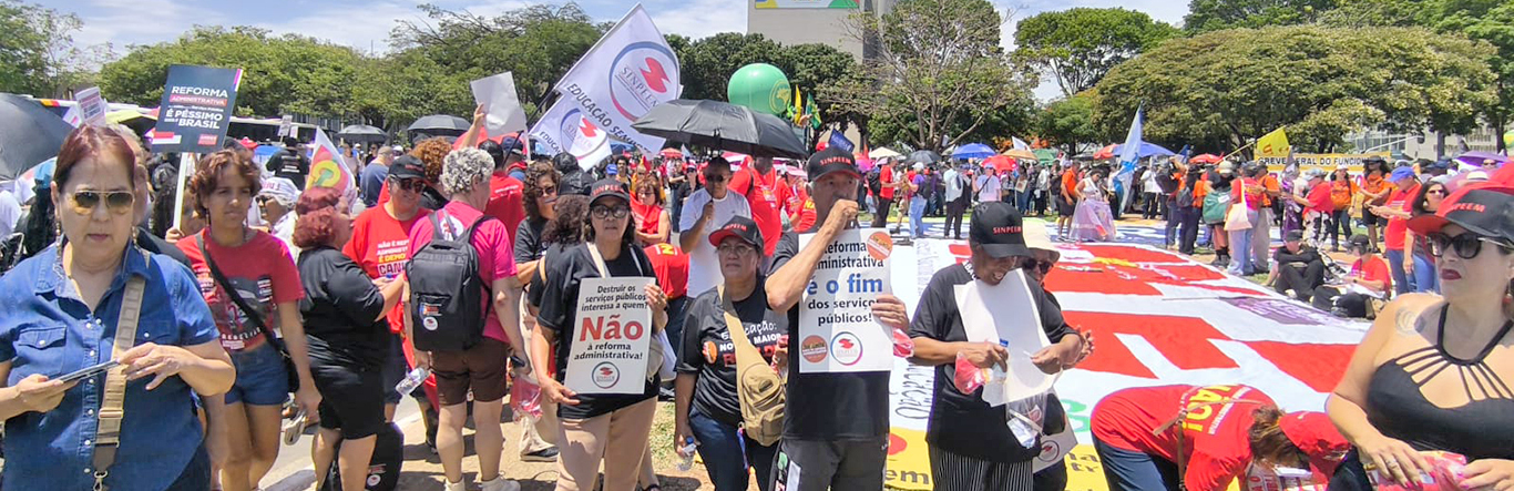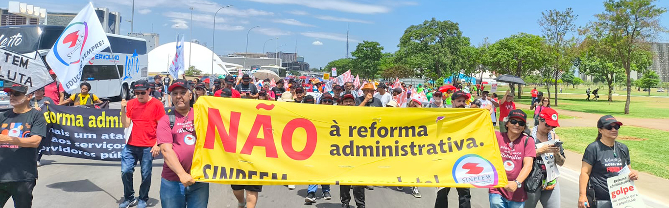 Nesta quarta-feira, 29/10, o SINPEEM participou, em Brasília, da marcha nacional contra a reforma administrativa, que prevê a precarização de serviços públicos essenciais para a população como saúde, educação, segurança e previdência, destruindo direitos de 12,6 milhões de servidores públicos em todo o país, nas esferas federal, estadual e municipal.